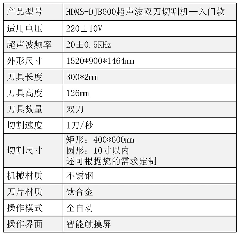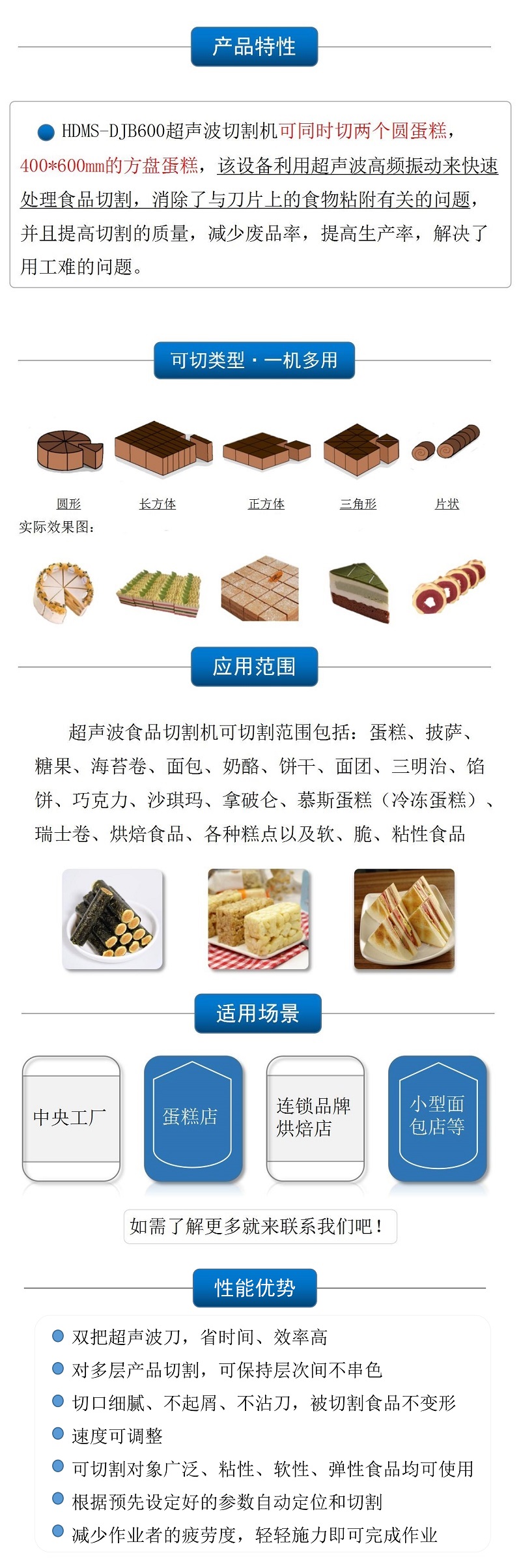 該設(shè)備配備單把超聲波刀片,可切圓形(只限一個(gè)圓蛋糕),也可切方形