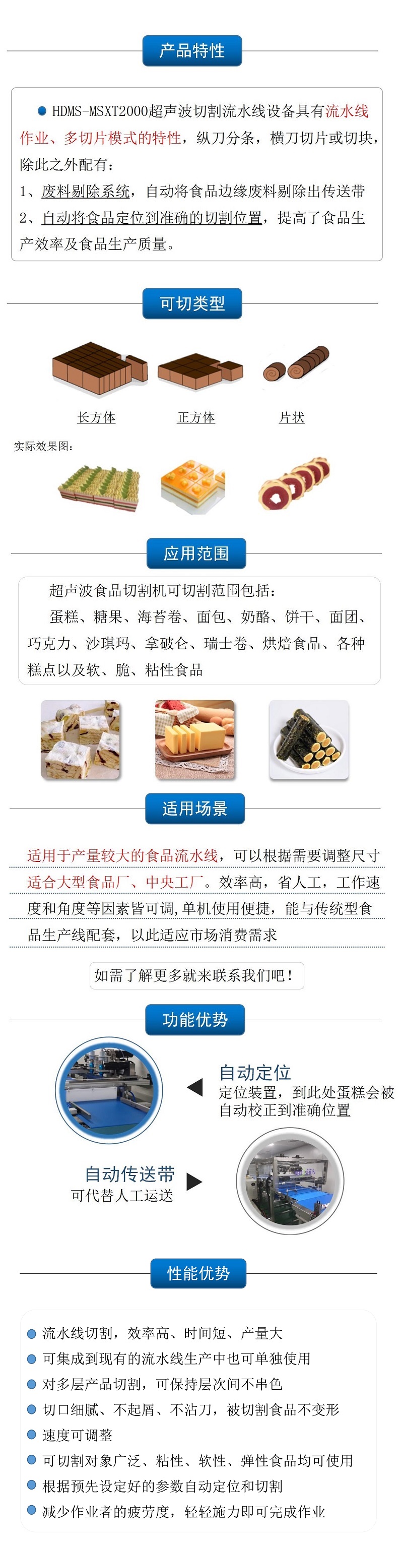 該設(shè)備配備單把超聲波刀片,可切圓形(只限一個(gè)圓蛋糕),也可切方形 |